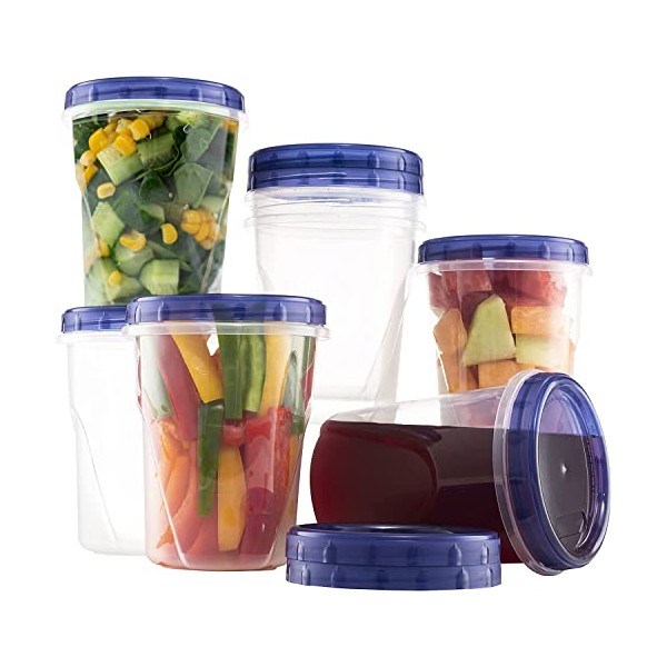Soup Freezer Storage Containers With Twist Top lids [32 Oz - 9 Pack] Reusable Plastic Food Container with Screw On Lids, leak proof, Airtight, Stackable, Microwave Safe BPA Free