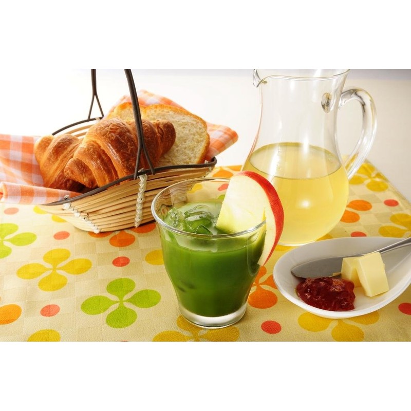 A clear taste of green juice made from 4 types of vegetables from Kyushu (barley, wakama, ka), Asaha, and goya.