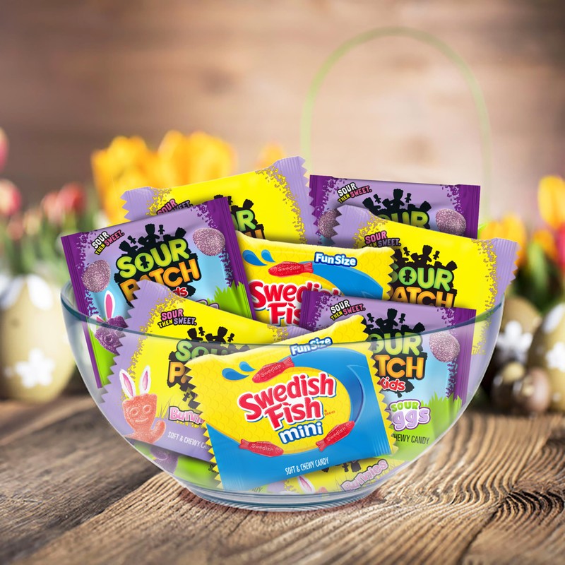 - One bag, 80 snack packs, of SOUR PATCH KIDS Bunnies, SOUR PATCH KIDS Sour Eggs, and SWEDISH FISH Mini Soft & Chewy Easter Candy