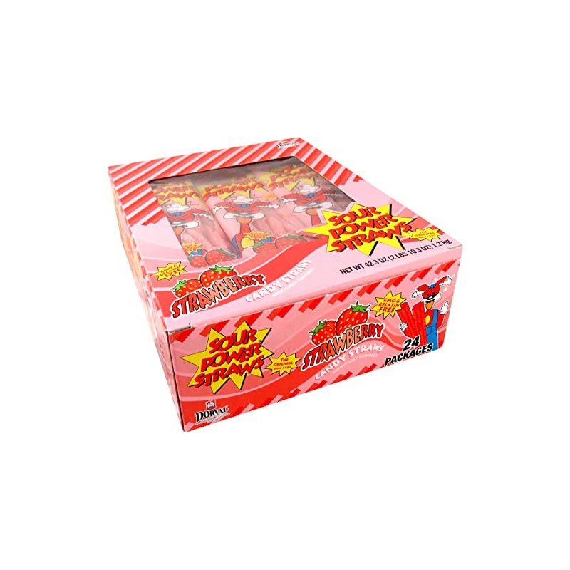 Sour Power Candy Straws, Strawberry, 1.75 oz (Pack of 24)