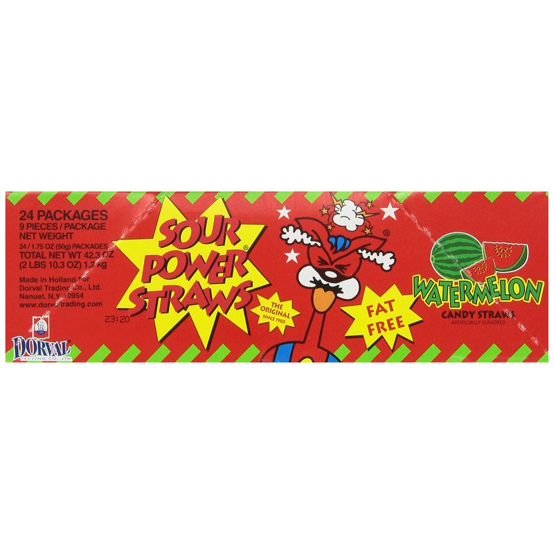 Sour Power Candy Straws, Watermelon, 1.75 oz (Pack of 24)
