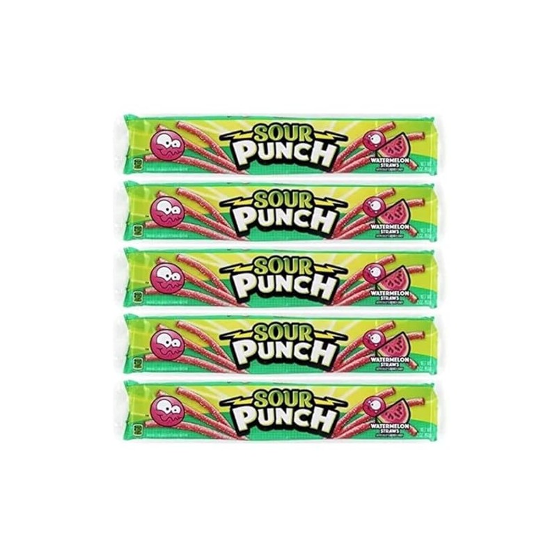 Sour Punch Straws Bundle 5 Items Gift Assortment 2 ounce pack each, 5 packs total (Watermelon)