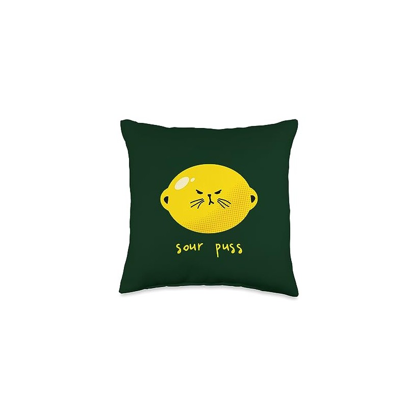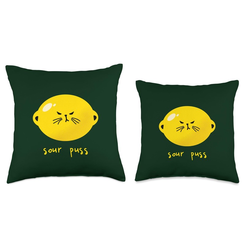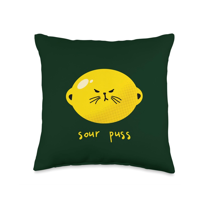 - Cute cantankerous kitty face on a lemon equals Sour Puss, perfect for curmudgeons and irritable crabby pants.