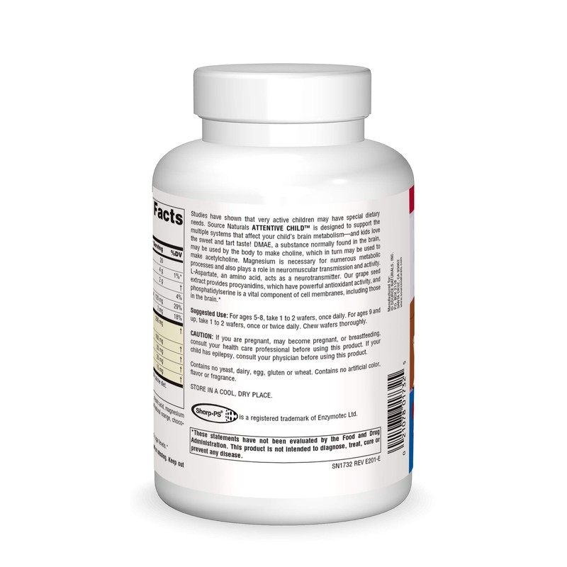 Source Naturals Attentive Child Chewable Wafers for Brain Metabolism Support ...