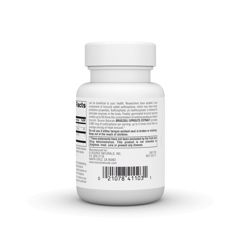 - Benefit From Source Naturals. Freshly germinated broccoli sprouts contain up to 50 times the concentration of isothiocyanates as mature broccoli. Each tablet is packed with 2,000 mcg pf sulforaphane.