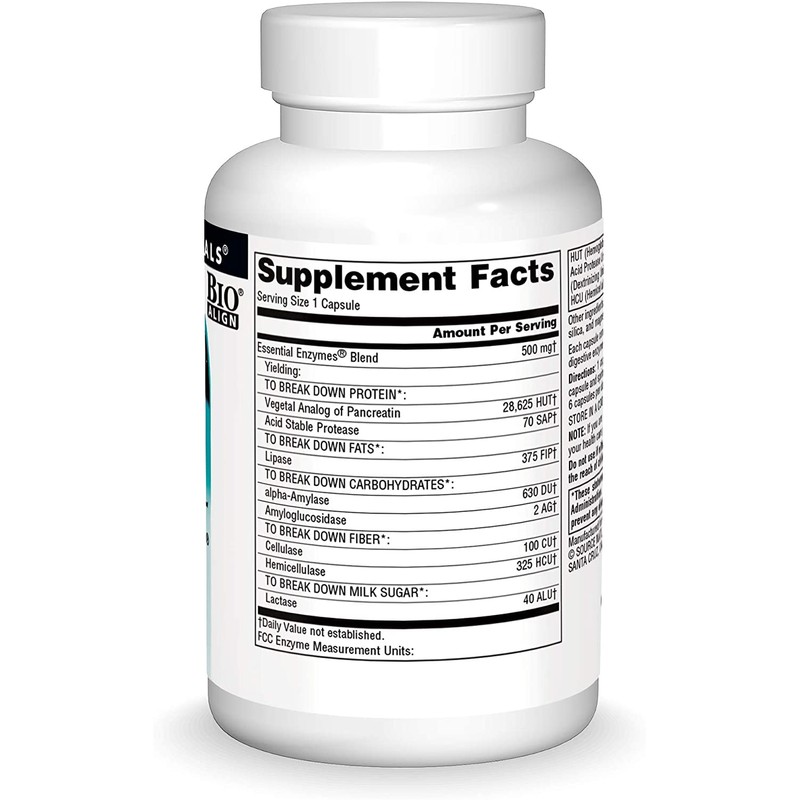 Source Naturals Essential Enzymes 500mg Bio-Aligned Multiple Enzyme Supplement Herbal Defense for Digestion, Gas, Constipation & Bloating Relief - Supports A Strong Immune System - 60 Capsules