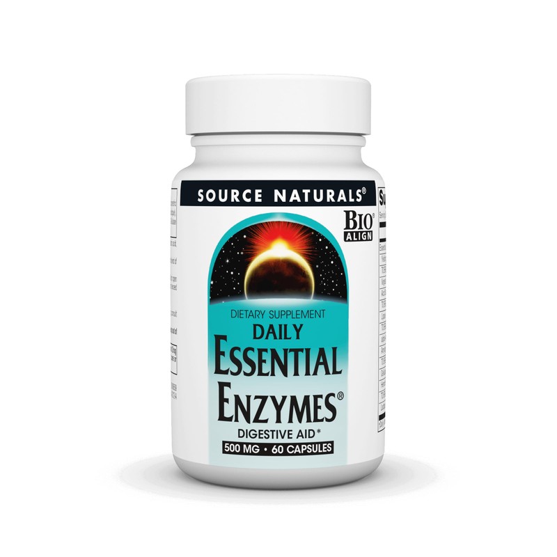 Source Naturals Essential Enzymes 500mg Bio-Aligned Multiple Enzyme Supplement Herbal Defense for Digestion, Gas, Constipation & Bloating Relief - Supports A Strong Immune System - 60 Capsules