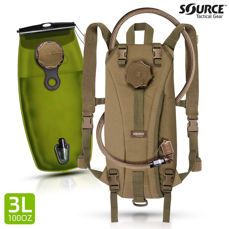 Source Tactical Hydration Pack - 3L WXP Widepac Water Bladder with External Fill Port - High-Flow Storm Drinking Valve - Dual Function: Backpack/MOLLE Mounted Modes