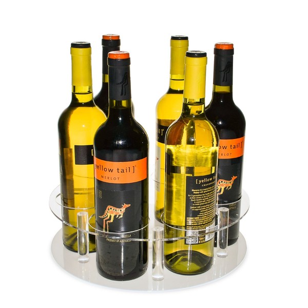 SOURCEONE.ORG Source One Deluxe Clear Acrylic 6 Wine Bottle Rotating Lazy Susan Counter Top Perfect for Bottles of Wine, Champagne, Sparkling Cider and Water