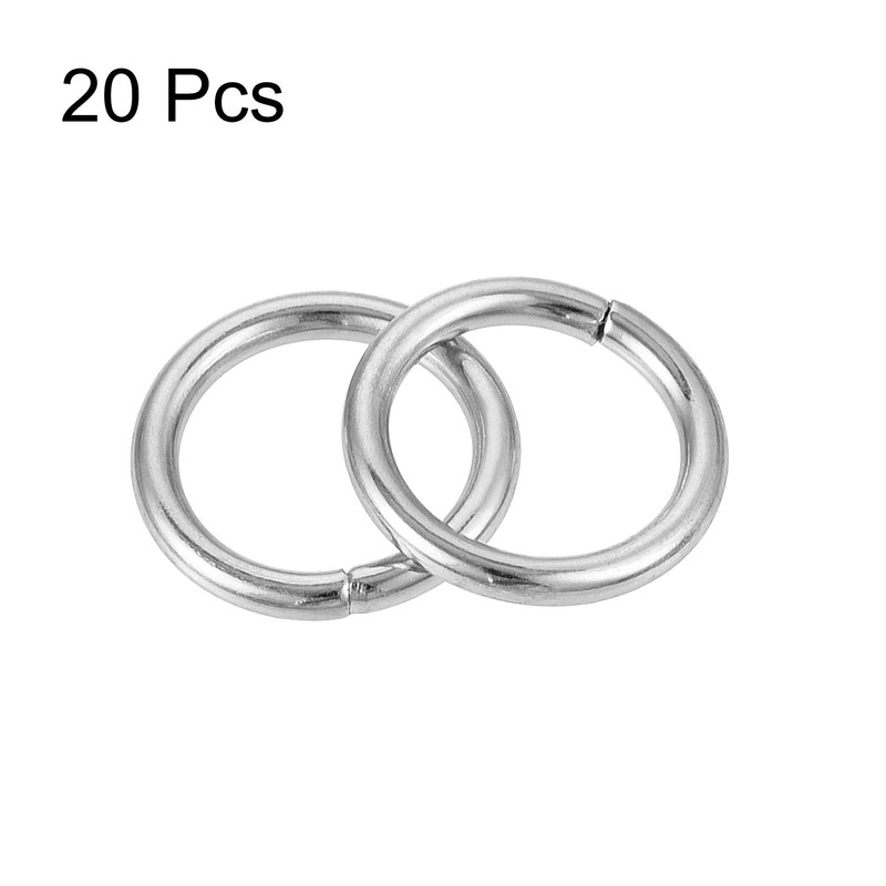 sourcing map 0.39"(10mm) Metal O Rings 1.6mm Thick Non-Welded Ring for Straps Bags Decoration Hardware DIY Silver Tone 20pcs