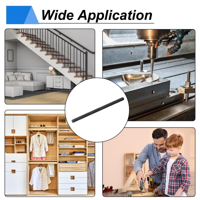 [Performance] - Fully threaded rods are mainly used for assembly and fastening. The full thread design enables long thread screws to provide a more uniform and stable force distribution when connecting or fixing. The threads are neat and clear, and the workmanship is excellent, which can ensure a safe and firm connection with other threaded parts.