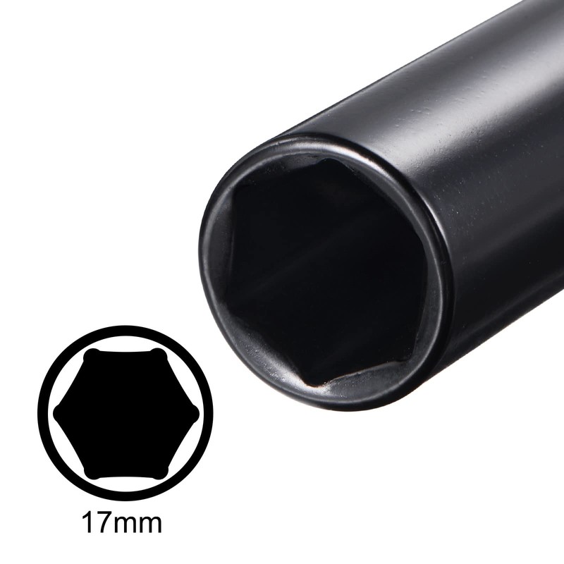 • [Size] - 1/2" square drive, 17mm 6-point socket, 200mm (8") total length.