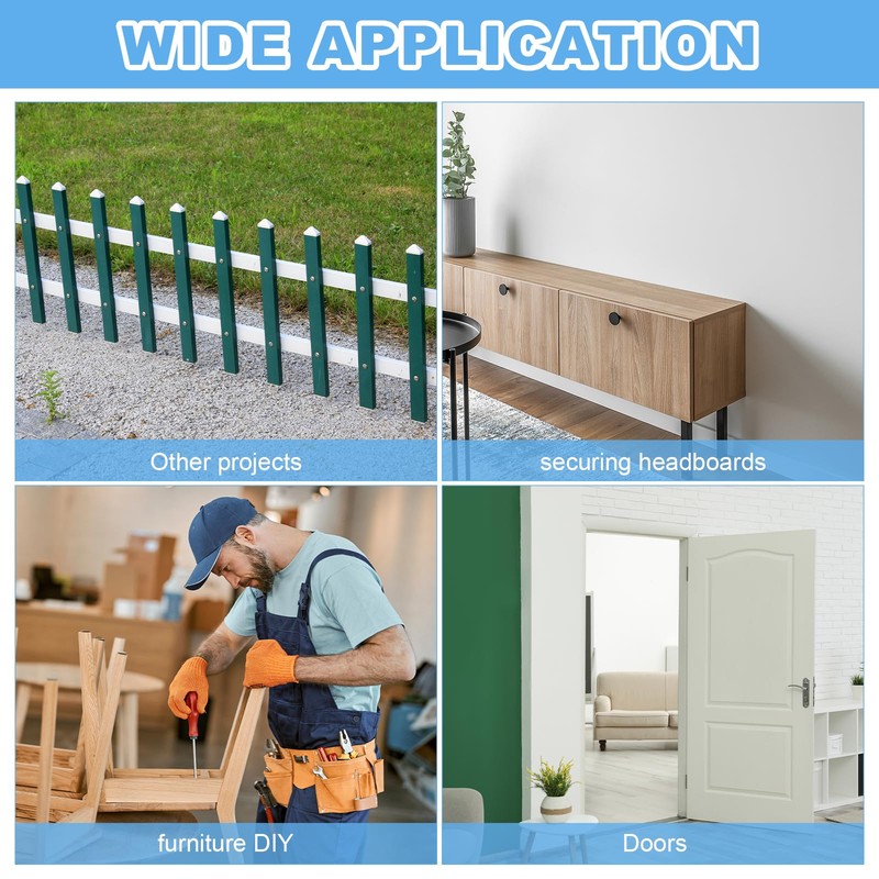 - [Wide Application] Carriage bolts are used to fix metal to wood. Widely used in homes and offices, both indoors and outdoors, such as securing headboards, footboards, doors, bed frames, furniture, TV, engineering, or other DIY projects.
