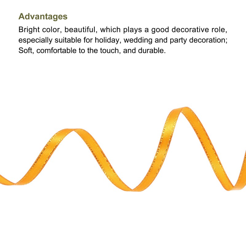 sourcing map 1/4 Inch 25 Yard Wide Satin Ribbon with Gold Edges Border Grosgrain Fabric Ribbon for Gift Wrapping Wedding Bouquet, Orange
