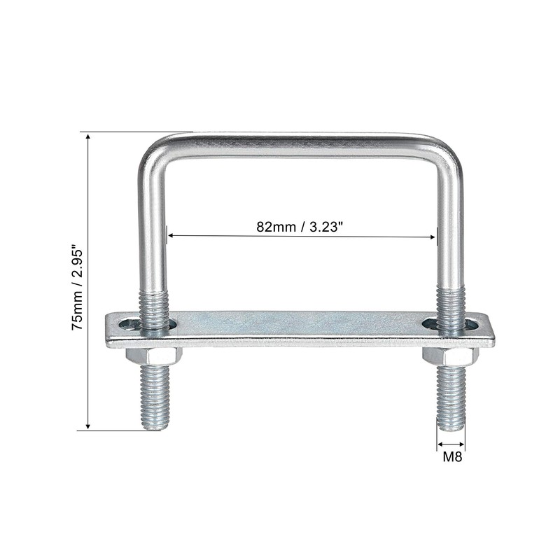 sourcing map 1 x Square U-bolt U-bolt U-bolt U-bolt U-bolts 3-1/4 inch (82 mm) inner width carbon steel M8 with nuts, frame plate, round washers