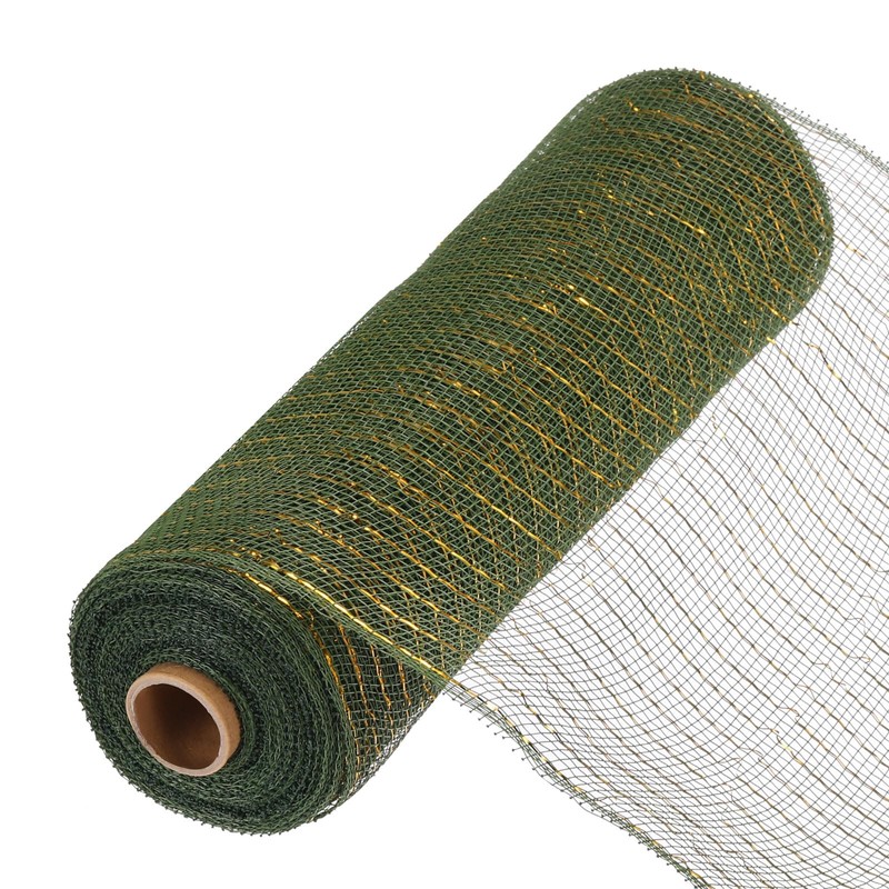 sourcing map 10 Inch Glitter Poly Burlap Mesh for Wreath, Decorative Mesh Fabric Ribbon 10 Yard for Fall Easter Christmas Flower Bow, Green & Gold