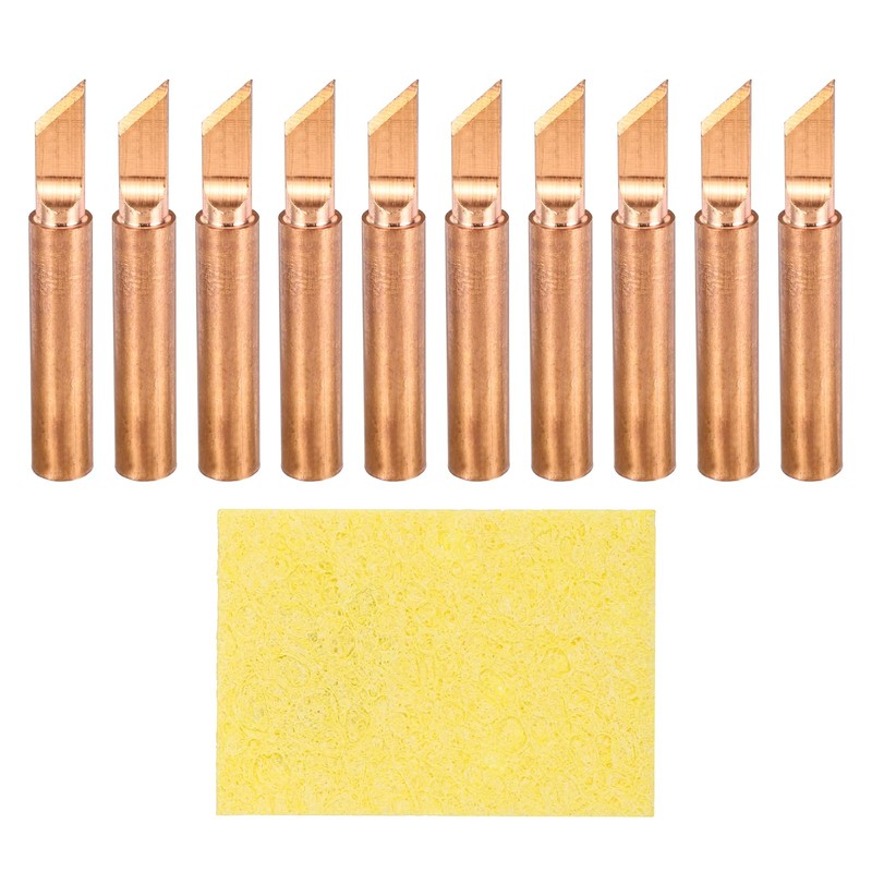 sourcing map 10 Pcs 900M Soldering Iron Tips Copper Non-Magnetic Welding Head with Cleaning Sponge Pad Replacement for Solder Station Tip (900M-T-1.5K)