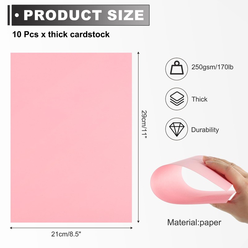 - Card stock paper size:8.5x11inch/21x29cm(LxW),weight:250gsm/170lb, paper thickness:0.1inch/0.3mm,color:Light Pink, material:paper, in the package of: 10 x thick cardstock