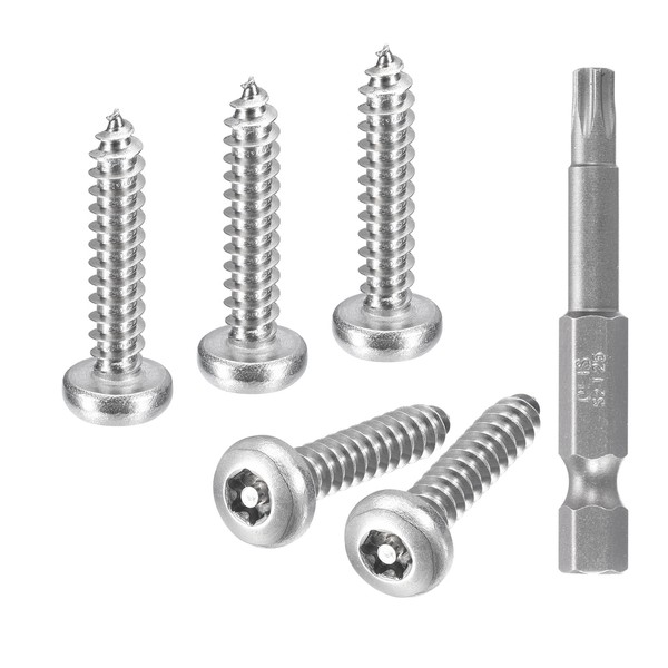 sourcing map #10 x 1" Torx Security Screws, 30pcs Button Head Tamper Resistant Self Tapping Screws, 304 Stainless Steel Anti-Theft Screws with Bit T25