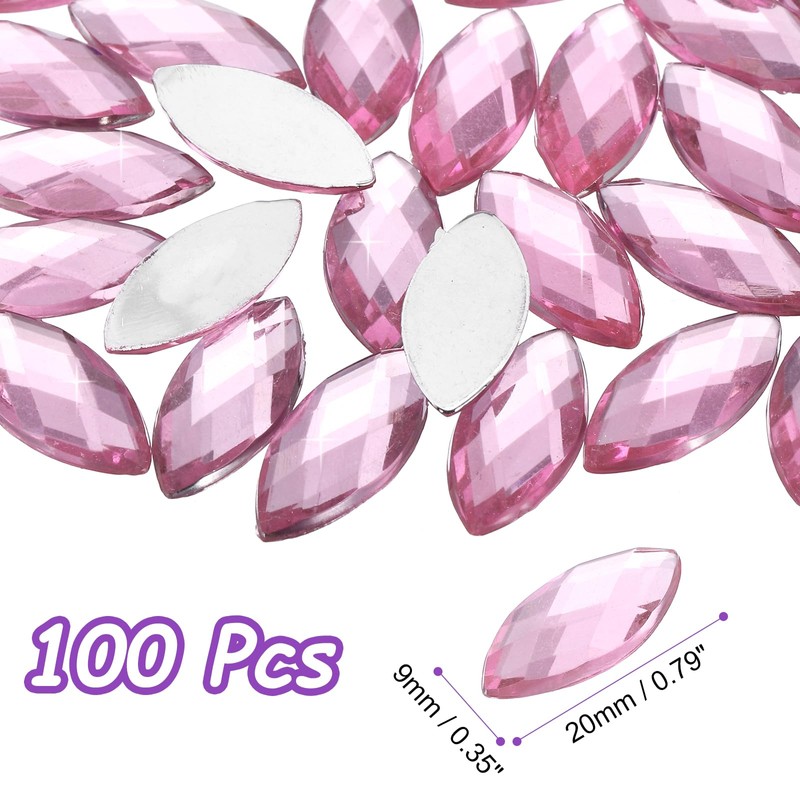 sourcing map 100 Pcs Acrylic Horse Eye Gems, Light Pink Rhinestones 20x9mm Flat Back Gems Flat Back Crystal Rhinestones Bulk Gems for Crafting Rhinestones for Clothes Crafting Bedazzling Nails