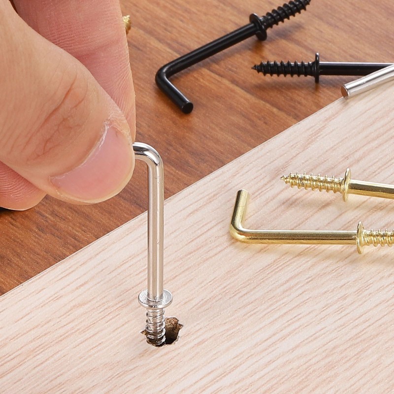 [L Shaped Design] - The metal screw hook is right-angled, making it easy to attach to surfaces or hang items securely. Standard thread, using an automated electroplating machine to ensure that each screw is even plated and not easy to rust; the materials are exquisite, the load-bearing strength is strong, the screw texture is strong, and it is not easy to slip.