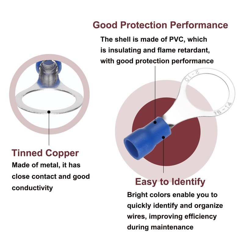 - The wire crimp connector's shell is made of PVC, with insulation and flame retardant, high safety and good protection performance. Crimp connector's pin made of metal, tight contact and good conductivity. The bright colors of the insulation materials enable you to quickly identify and organize the wires, improving efficiency during installation or repair.