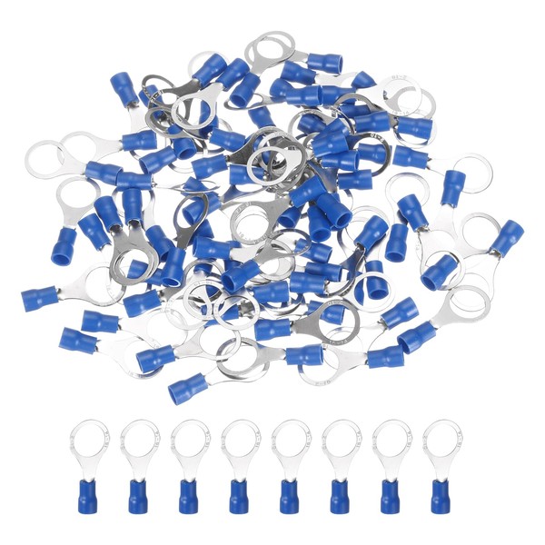 sourcing map 100 Pcs RV2-10 Insulated Ring Electrical Wire Connectors Wire Terminals Wire Crimp Connector Kit 17-14 AWG for Electrical Projects Industrial Chemical Industry, Blue