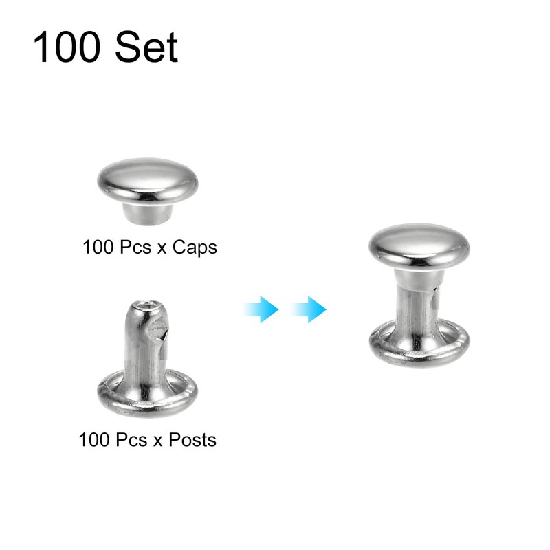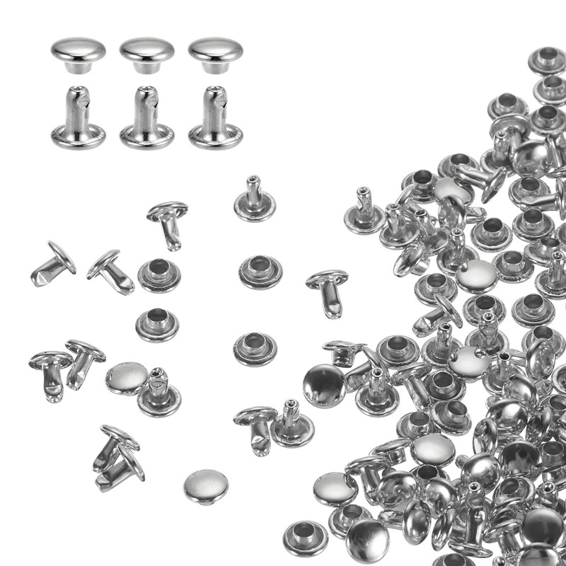 sourcing map 100 Sets Double Cap Leather Rivets, 6x6mm Round Cap Tubular Metal Studs Leather Crafting Rivets for Fabric Belt Pet Collar Boot Bag Repair and Decoration, Silver