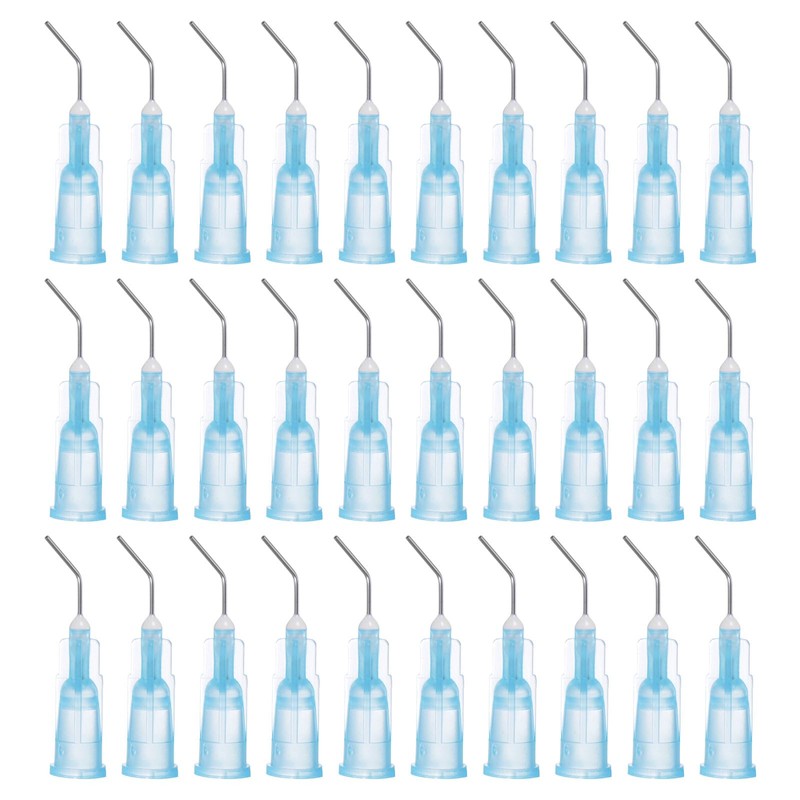 sourcing map 100pcs Blunt Tip Dispensing Needles, 23 Gauge 45 Degrees Bent Dispensing Tips 0.45" End Angled Dispenser Needle with Luer Elbow Blunt Needle for Oil or Glue Applicator, Blue
