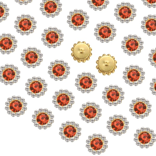 sourcing map 100pcs Sew on Rhinestones, 12mm Flower Claw Rhinestones Crystal Glass Metal Base Sewing Gems Buttons for Sewing Accessories Clothes Shoes Earring Belt Crafts, Red