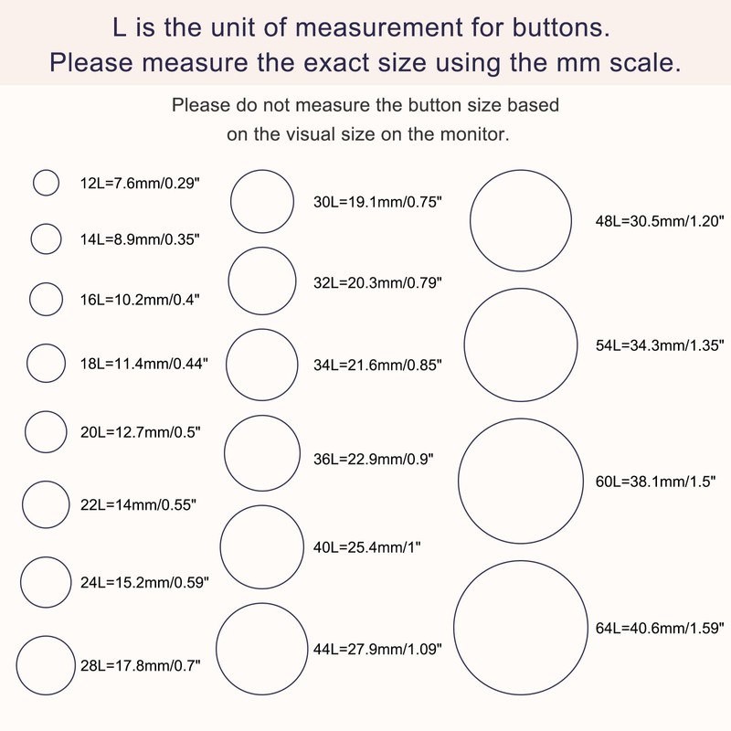 • Size - You will receive 10pcs round natural wood buttons with a diameter of 10mm(3/8"), a total height of 3.5mm(0.14"). 1 inch = 25.4mm or 1mm = 0.0393 inch.