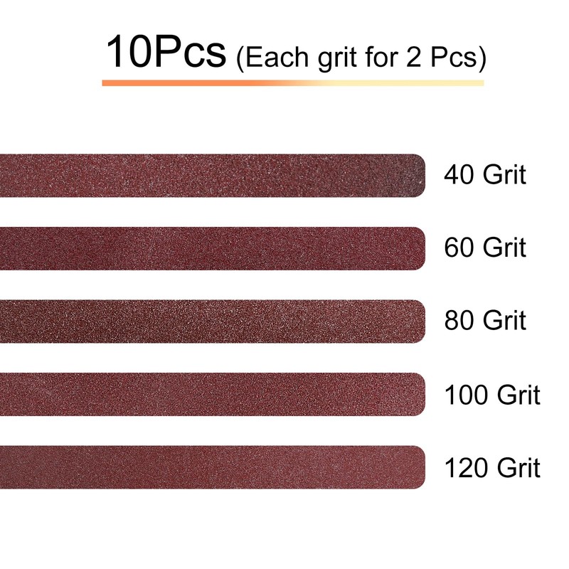 - Package Content - The total number is pcs Sanding Belts (2pcs of each grit: 40/60/80/100/120)