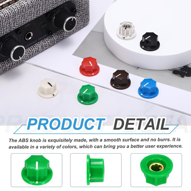 - 1. The knobs are beautifully made, with a smooth surface, no burrs edges, and all-ABS knobs without any plastic inserts; 2. The ABS knobs are wear-resistant and oxidation-resistant, durable and can adapt to different application situations; 3. There are a variety of colors to choose from, you can choose the knob that suits the color of your audio equipment to make your experience better.