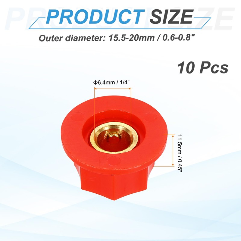 sourcing map 10Pcs ABS and Copper Potentiometer Knobs 1/4" Volume Tone Control Top Hat Knob for Guitar Instruments Audio Mixer Amplifier Red