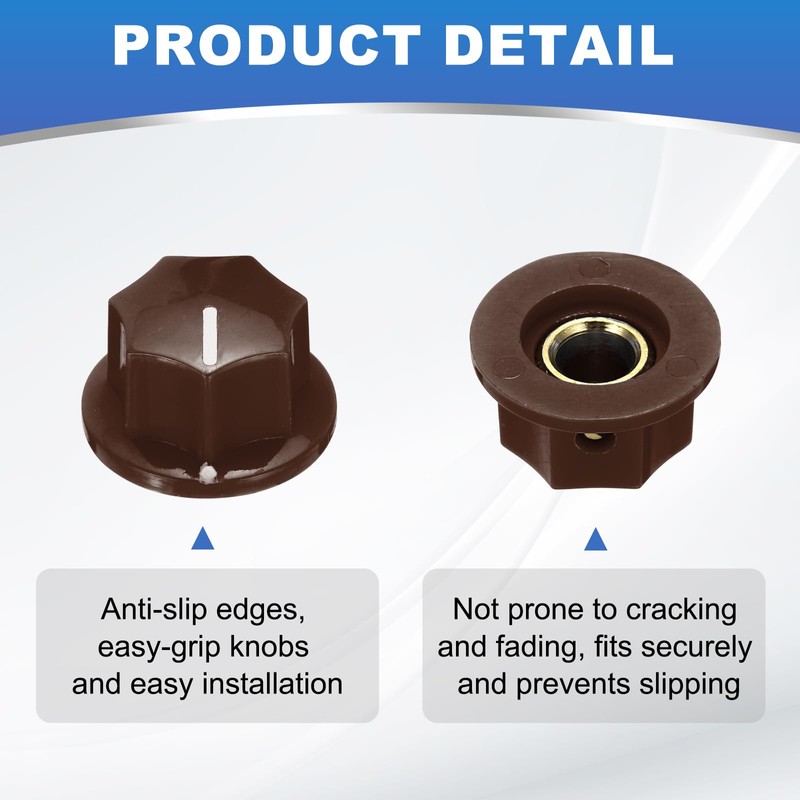 sourcing map 10pcs Brown Guitar Effect Pedal Knob, 7/16" Plastic Brass Insert Electric Guitar Knobs for Amplifier Guitar Bass Volume Control