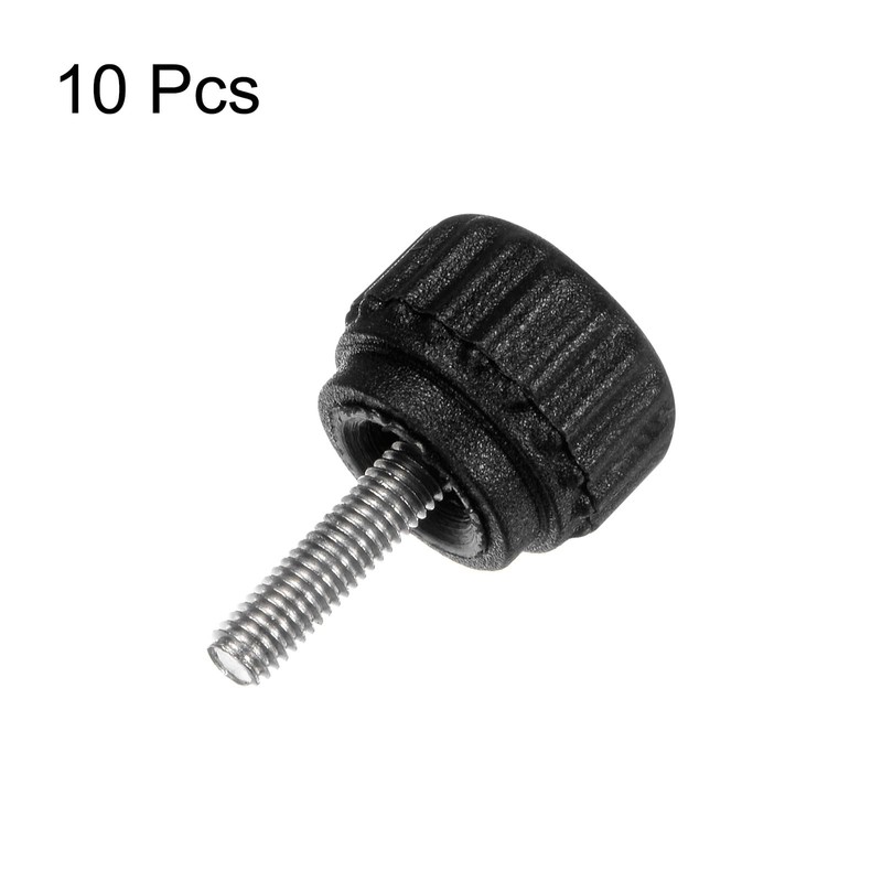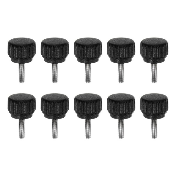 sourcing map 10pcs Knurled Clamping Knobs Thumb Screws M3 x 10mm Metric Male Thread 13mm Matte Plastic Head 304 Stainless Steel Stud Hand Threaded Knob Thumbscrew Handle, Black