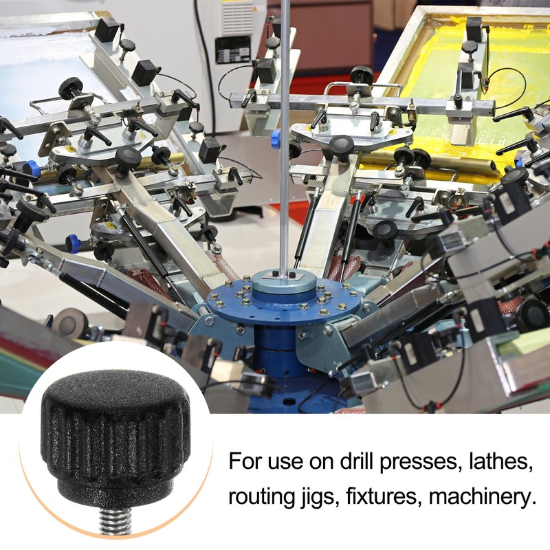 Knurled thumb screws are commonly used in applications that require frequent adjustments or tightening. The metric male hand knobs can be widely used in lathes, drill presses, sawing machines, packaging and woodworking machinery, printing, instrument and industrial equipment, and fixtures.