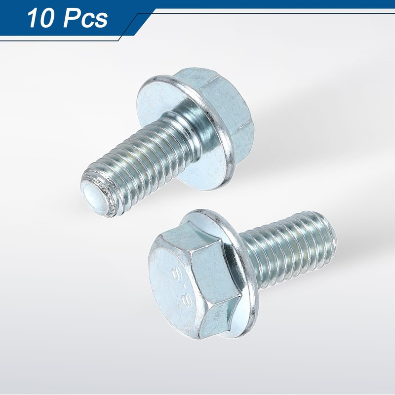 sourcing map 10pcs M8-1.25 x 16mm Metric Flange Hex Cap Bolt Fully Thread DIN 6921 Flanged Bolts Hexagon Screws Carbon Steel Zinc Plated Blue/White