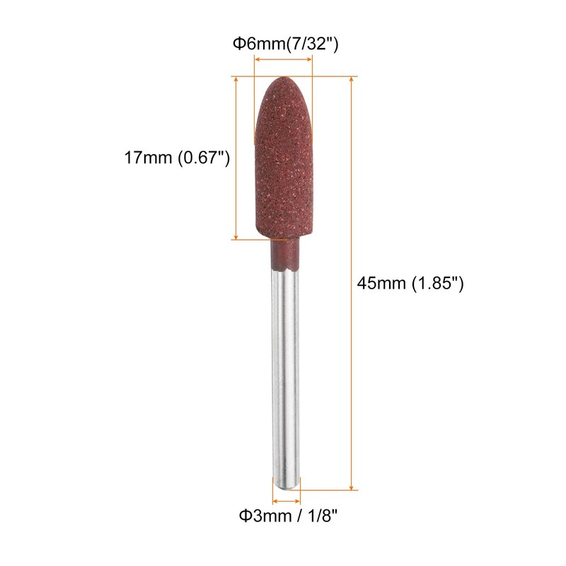 sourcing map 10pcs Rubber Polishing Bits, Rotary Buffing Bits with 6mm (7/32-inch) Mounted Conic Head, 3mm (1/8-inch) Shank, for Metal, Jewelry, Stone, Rock Grinding, Red