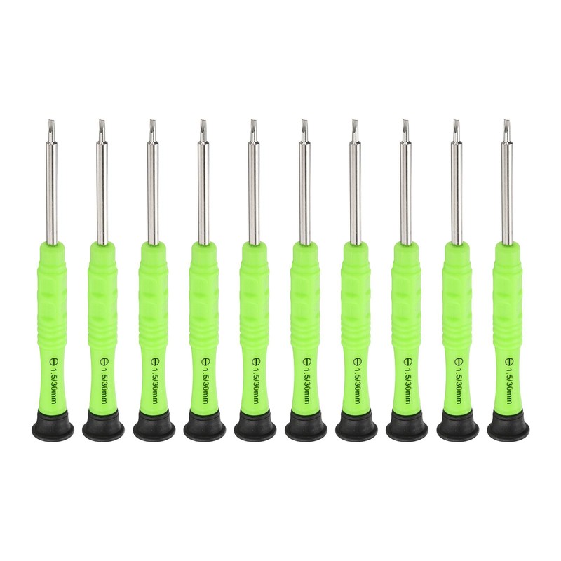 sourcing map 10pcs SL1.5 Mini Slotted Screwdriver 3mm Flat Head 87mm Length for Small Appliances Repairs, Yellow Green