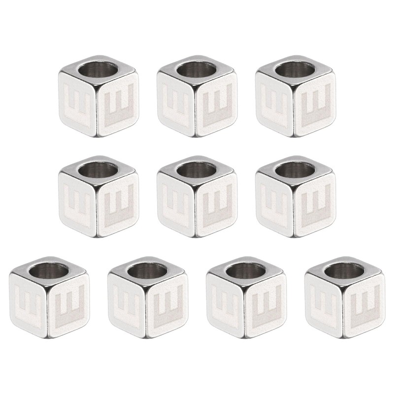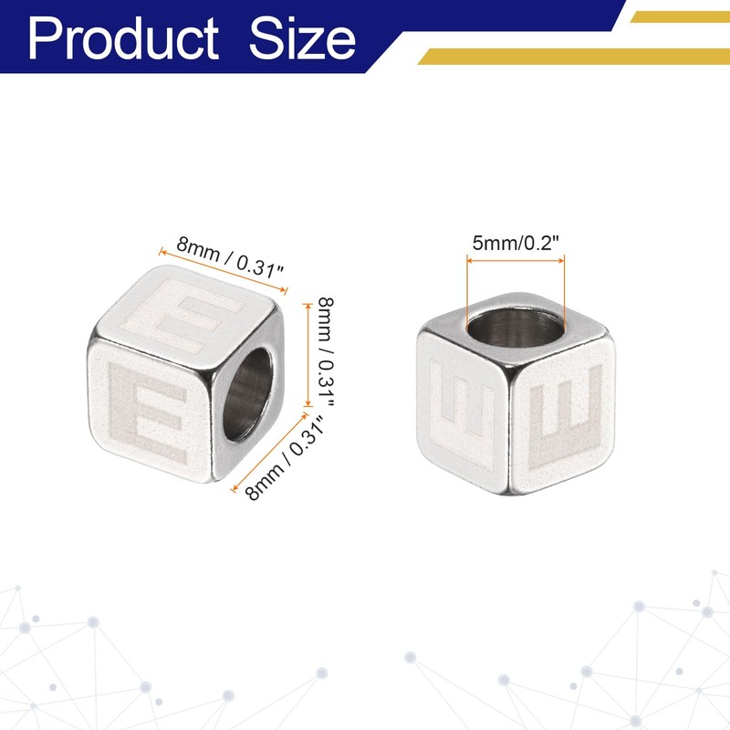 sourcing map 10Pcs Stainless Steels Letter Beads Alphabet Letter E Cube Silver Metallic Large Square Metal Dice Beads for Jewelry Bracelets Necklaces Earrings