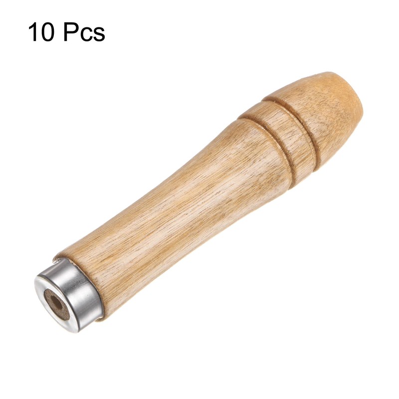 sourcing map 10pcs Wooden File Handle 3.54 Inch Round Hole Ergonomic Handles with Metal Collar for 4" - 6" Metal Files