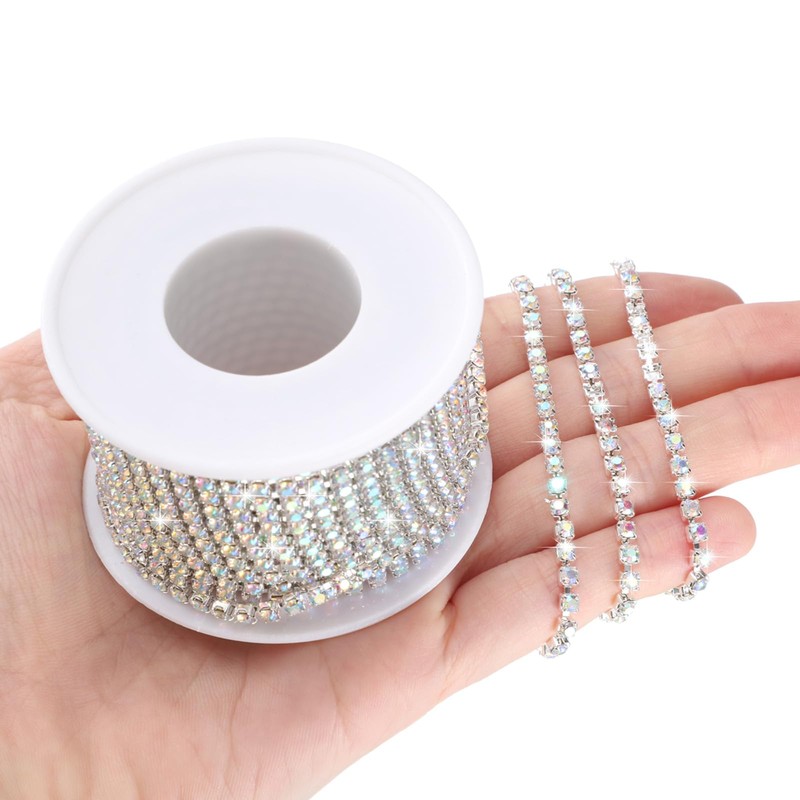 - Product Detail - You will get a single roll of rhinestone chain trim measuring 11 yards in length and 3 mm/0.1 inch width, which is good for diverse decorative projects.