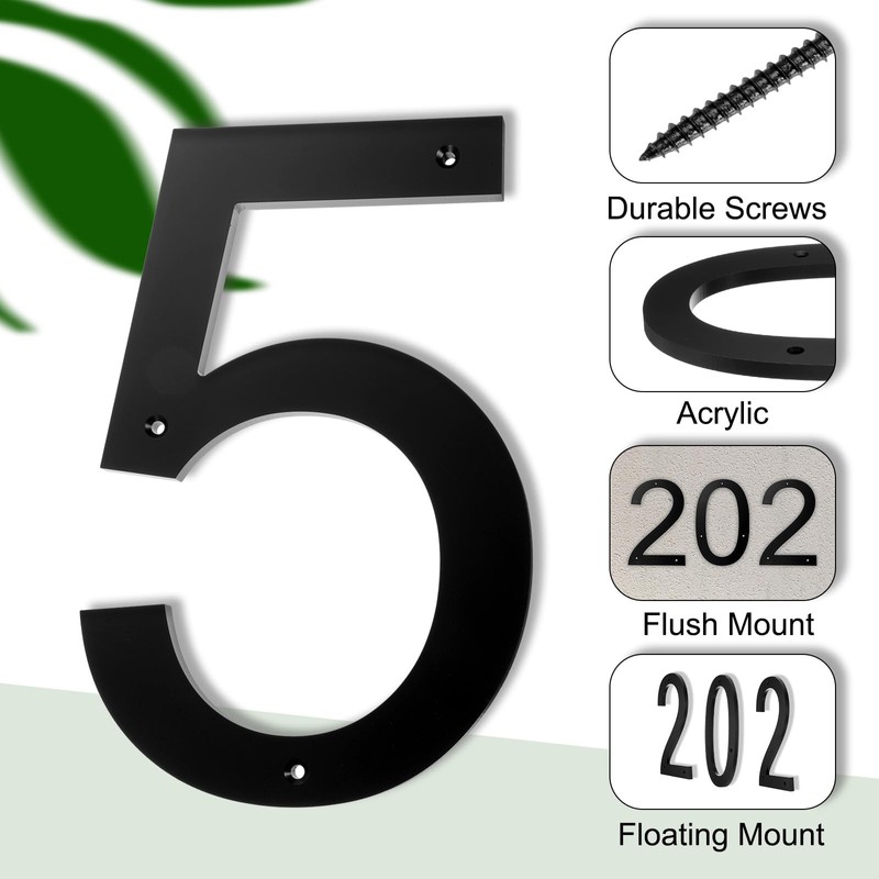 sourcing map 12 Inch Modern House Number, Acrylic Floating House Number for Outside Address Sign for House with Nail Kit for Mailbox Yard Home Front Door (Number 5, Matte Black)