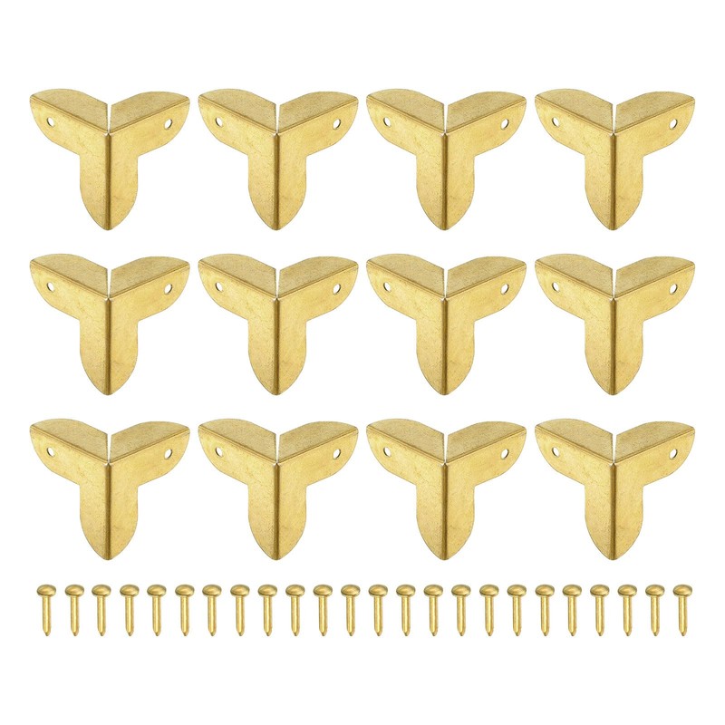 sourcing map 12 Pcs Decorative Box Corner Cover, 21mm Metal Edge Guard, Furniture Corner Edges Protector with Screws, Yellow