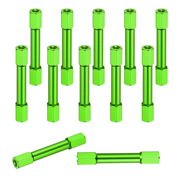sourcing map 12 Pcs M3 x 40mm Knurled Aluminum Standoff Double-Head Spacer Column for FPV Drone RC Airplane Racing Car Simracing, Green