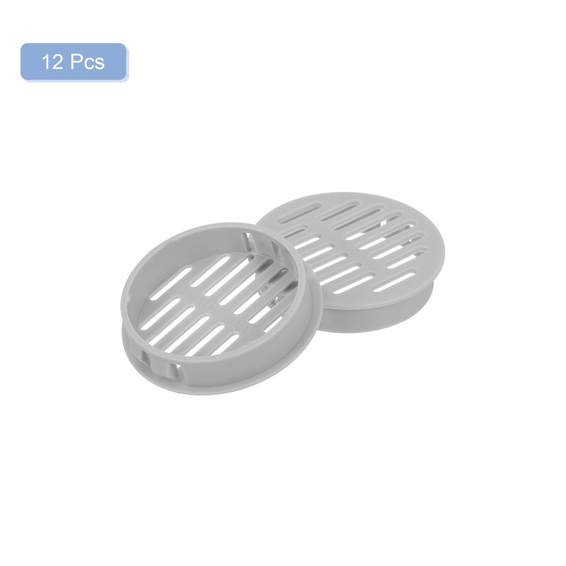 sourcing map 12Pcs 50mm/1.97" Circular Soffit Air Vents, Plastic Soffit Vent Cover, Round Mesh Hole Louver for Bathroom Kitchen Cabinet Wardrobe, Light Gray