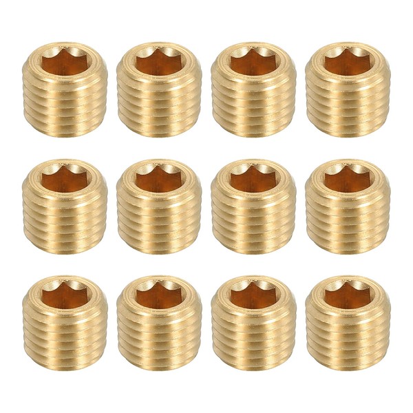 sourcing map 12Pcs Brass Pipe Plug Fitting, 1/16" NPT Male Hex Counter Sunk P...