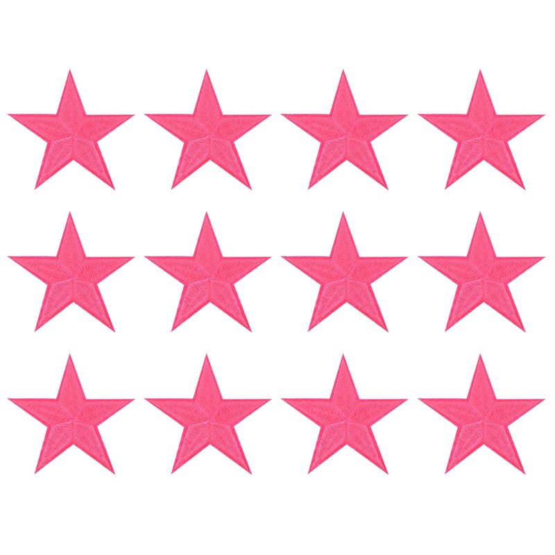 sourcing map 12Pcs Iron on Star Patches, Sew on Star Embroidered Patches, Decorative Repair Patch Applique for DIY Crafts Backpacks Bags Hats Clothes, 82mm Dark Pink
