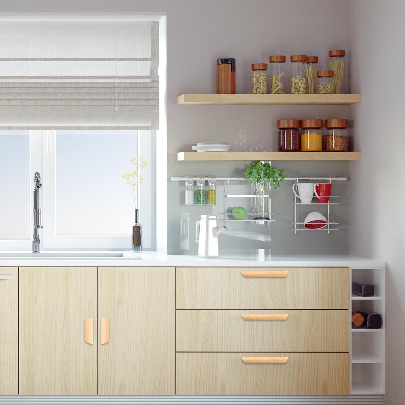 Material - The drawer pulls are made of beech wood with clear coated, which is not easy to deform or fade, surface smoothly, hold comfortably, and suit the modern farmhouse style.